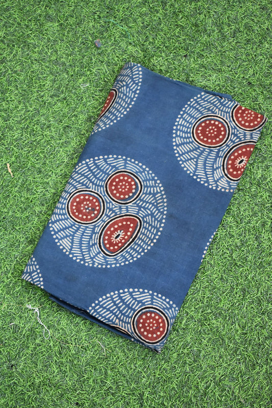 Block Print Ajrakh Cotton Suit with designer Ajrakh neck yoke /panel & Dupatta