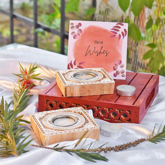 Gift Hamper - Wooden Carved T Light Holders - Set of 2 holders