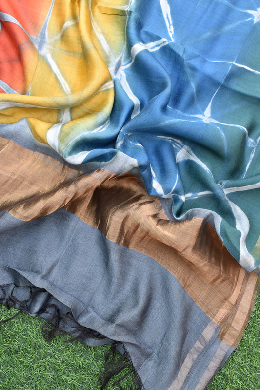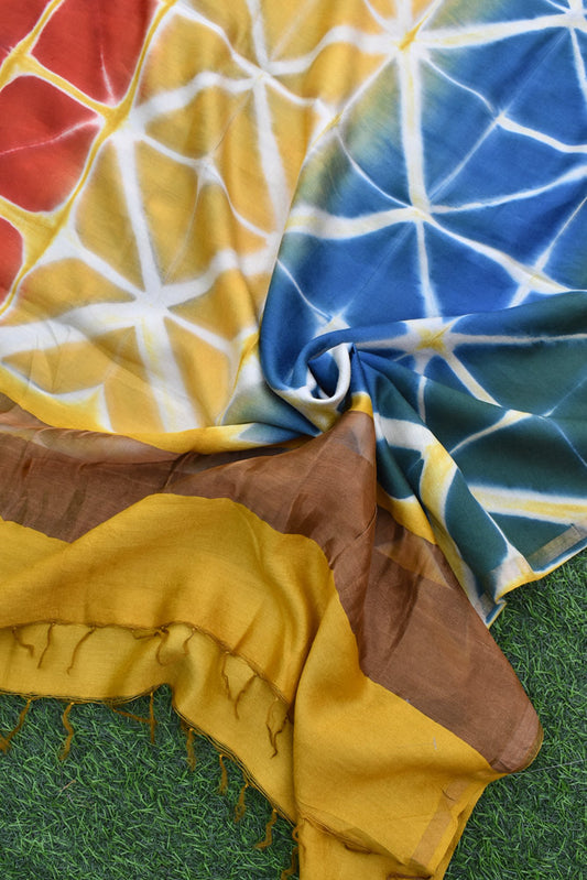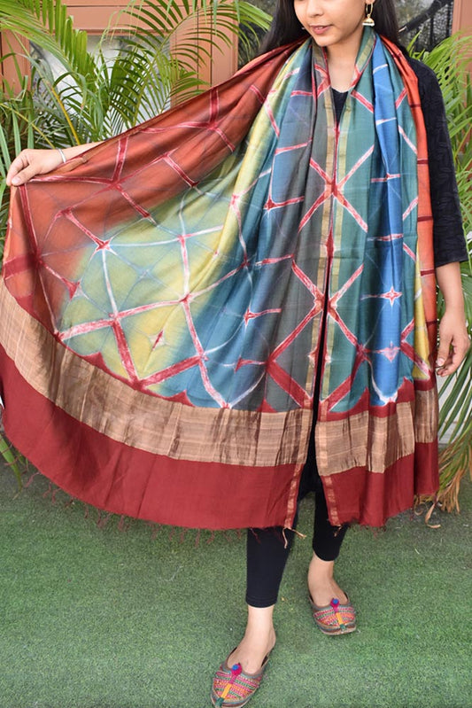 Clamp Dyed Chanderi Dupatta with Zari border and palla