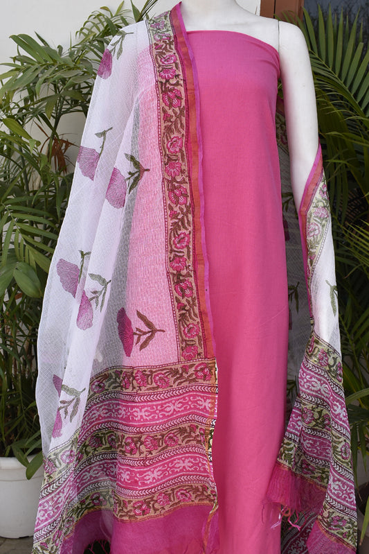 Beautiful Cotton unstitched suit fabric with Kota Doria Dupatta