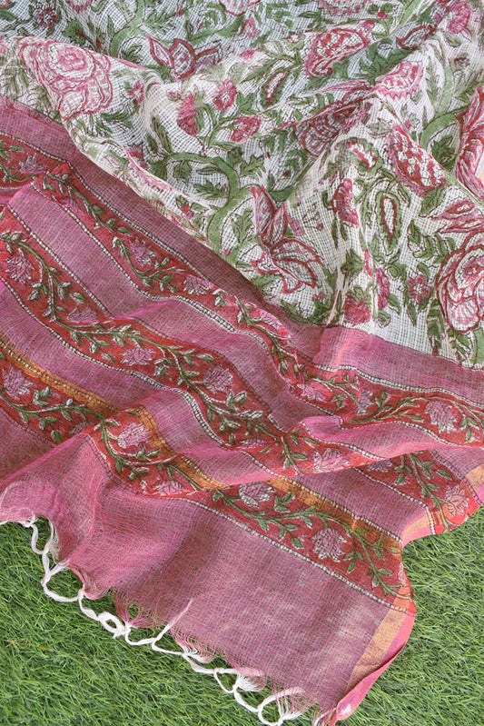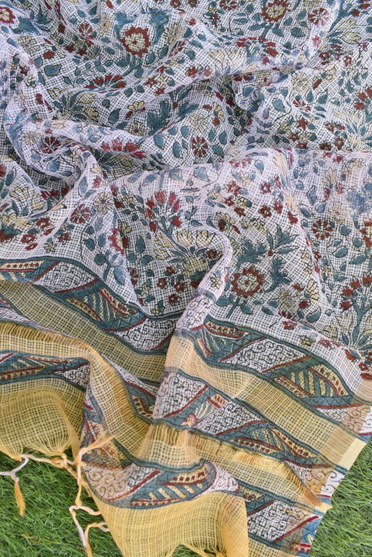 Beautiful Blended silk cotton dupatta with Kalamkari inpired motif and Zari palla