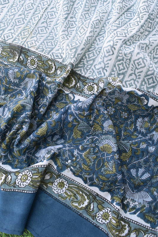 Hand Block Printed Cotton suit with Hand Embroidery - Kurta , Cotton Dupatta & Pant - 40, 42, 44