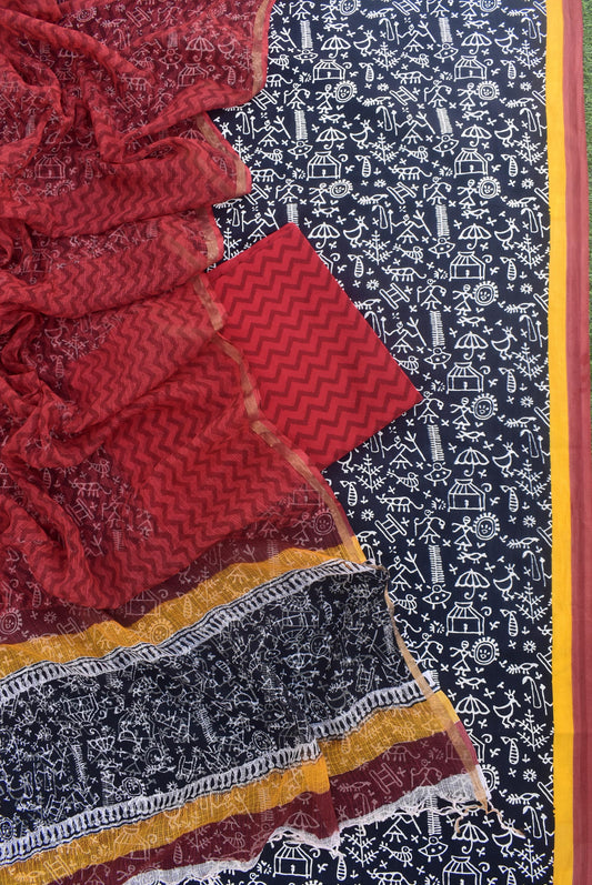 Beautiful Cotton unstitched suit fabric with Kota Doria Dupatta