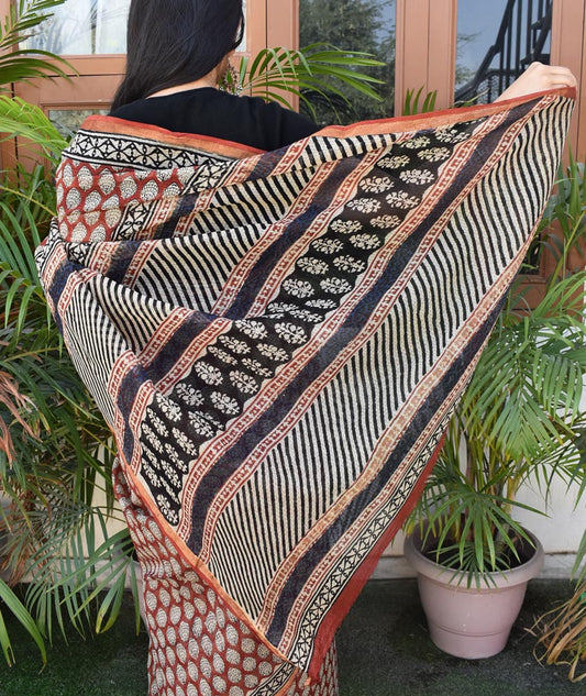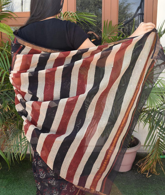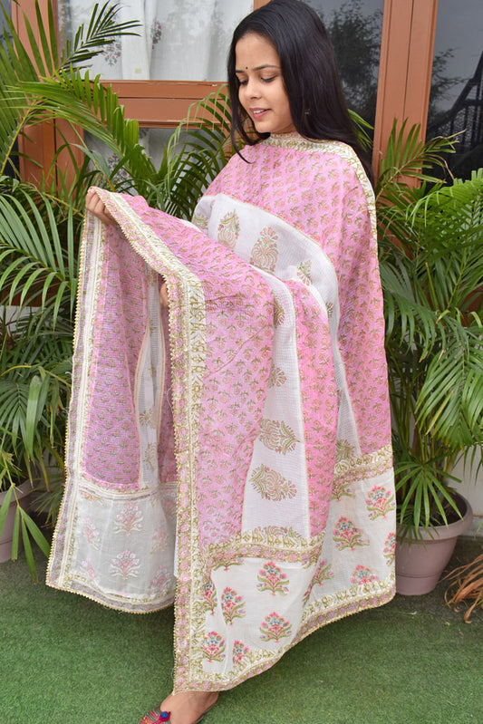 Hand Block Printed, Patch and Embroidery Work Kota Doria Dupatta