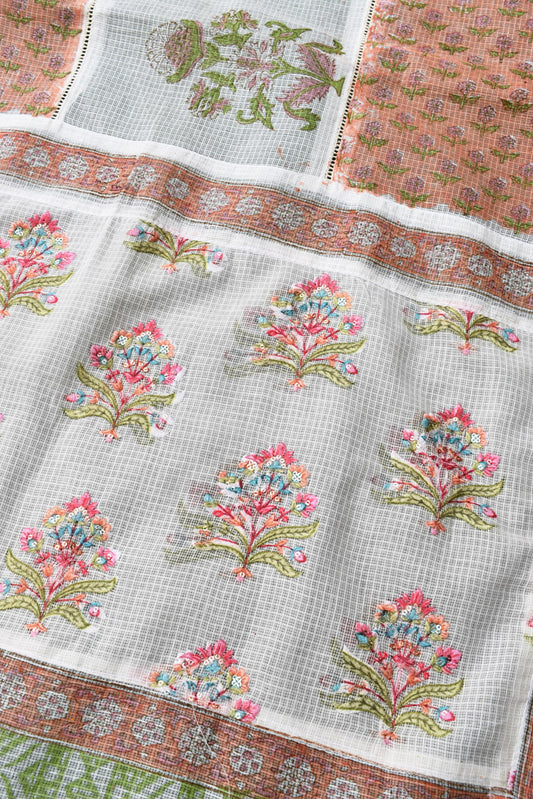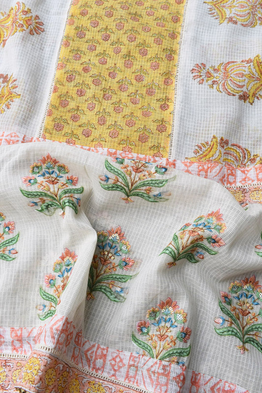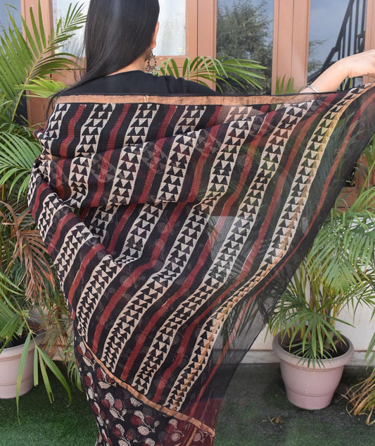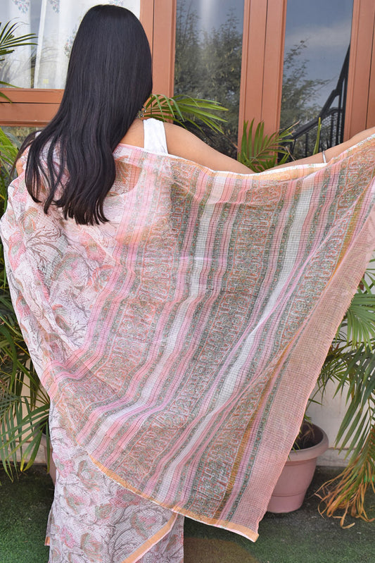 Beautiful Hand Block Printed Kota cotton Saree with zari border