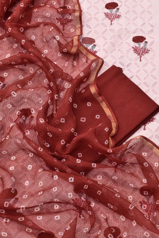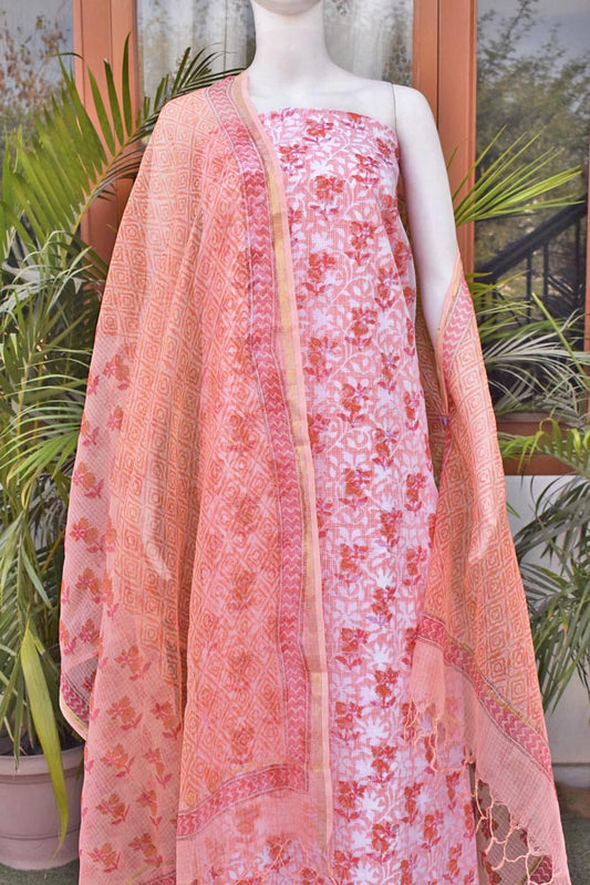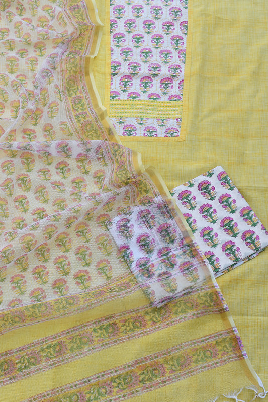 Elegant Sanganer Hand Block Printed Kota cotton Unstitched suit with Cotton Lining & bottom - 4 pc set