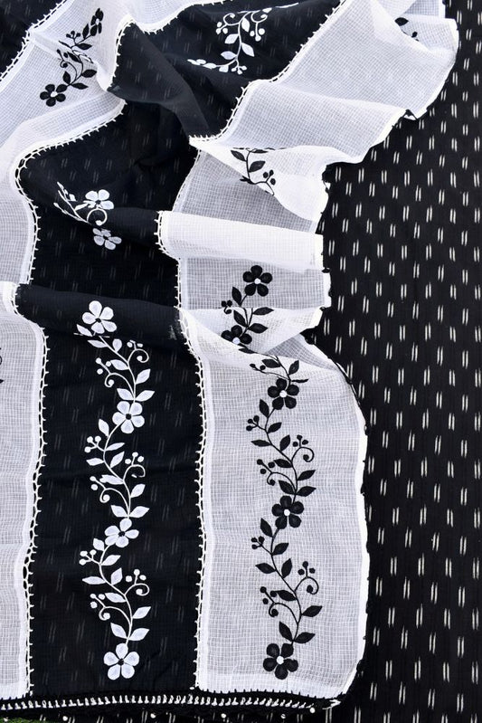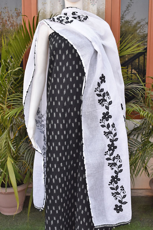 Hand Block Printed Cotton Suit with Hand applique work & Kota dupatta