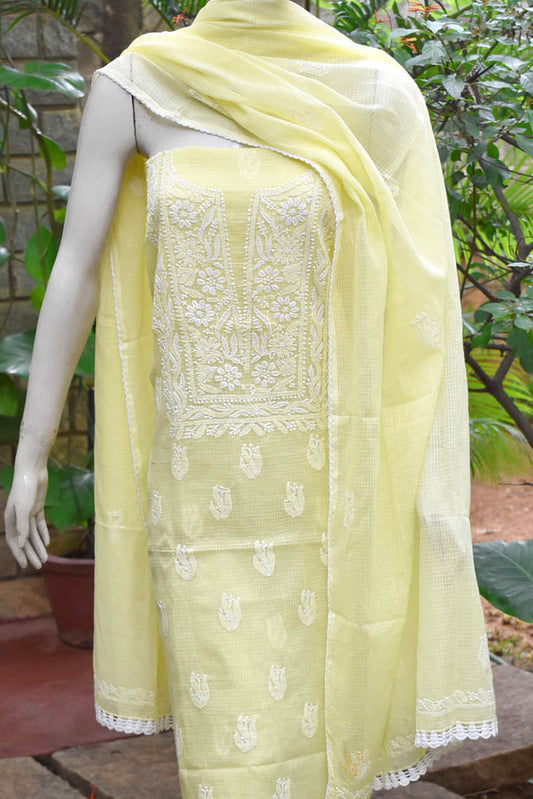 Elegant Kota Doria Kurta & Dupatta Set with Lucknowi Hand Chikankari embroidery