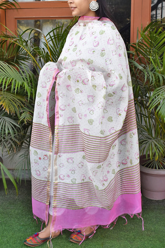Eternal Embrace : Hand Block Printed Chanderi Dupatta