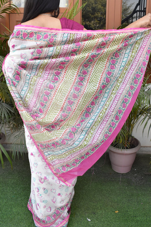 Eternal Embrace : Beautiful Hand Block Printed Chanderi Silk Cotton Saree