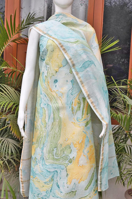 Handwoven Ikkat Silk Cotton Kurta fabric & dupatta Set