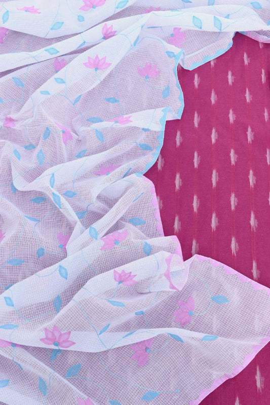 Elegant Handwoven Ikkat kurta fabric with Hand Phool Patti work dupatta - 2 pc set