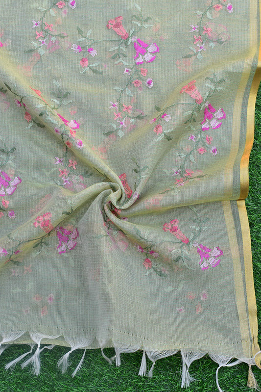 Elegant Kota Tissue dupatta with All over Cross Stitch Embroidery - Lime Green