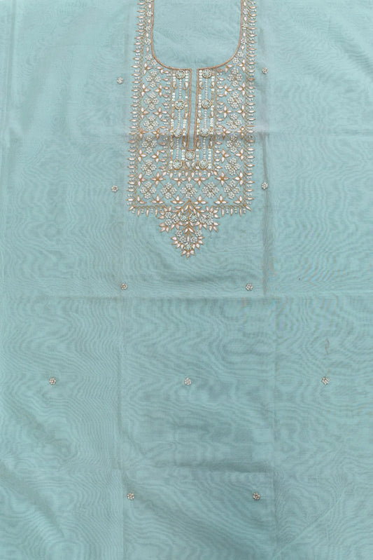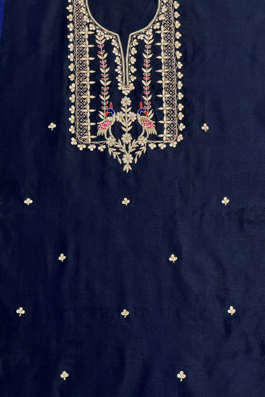 Elegant chanderi Fabric with Hand Embroidery , Aari, Zardozi & Gota Patti Work( 2.5 mtrs)