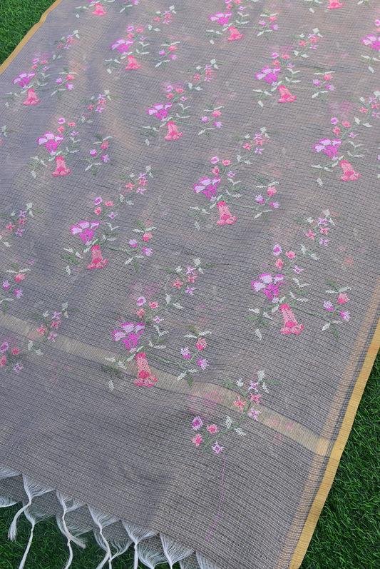 Elegant Kota Tissue dupatta with All over Cross Stitch Embroidery - Grey