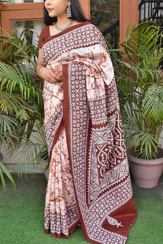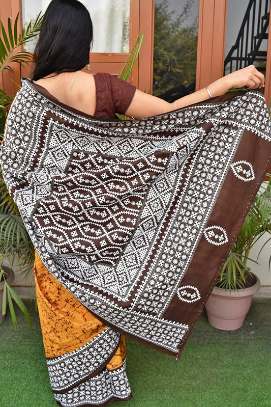 Hand Embroidered Sindhi Stitch work & Wax Batik Bangalore Pure Silk saree