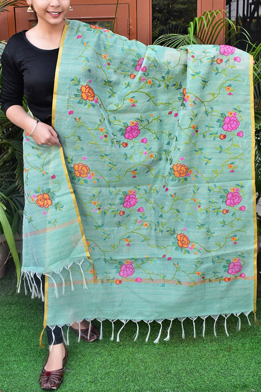 Elegant Kota Tissue dupatta with All over Cross Stitch Embroidery - sea green