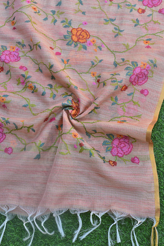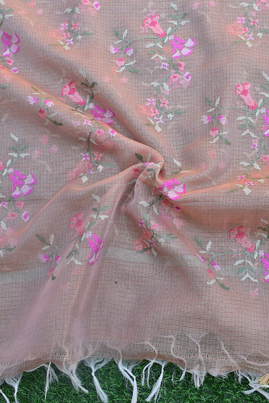 Elegant Kota Tissue dupatta with All over Cross Stitch Embroidery - Peach