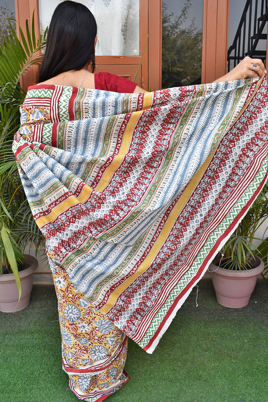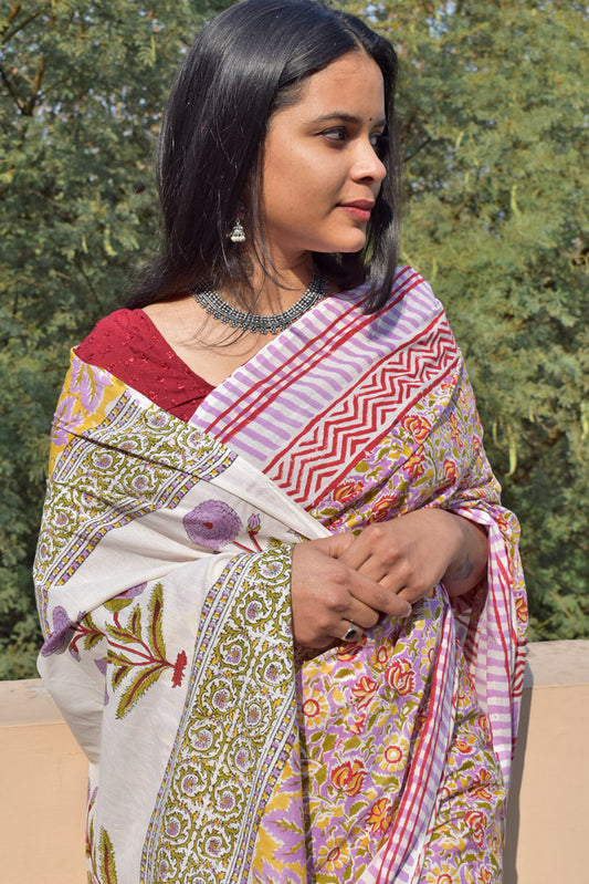 Beautiful Sanganer Hand Block Print Cotton Saree
