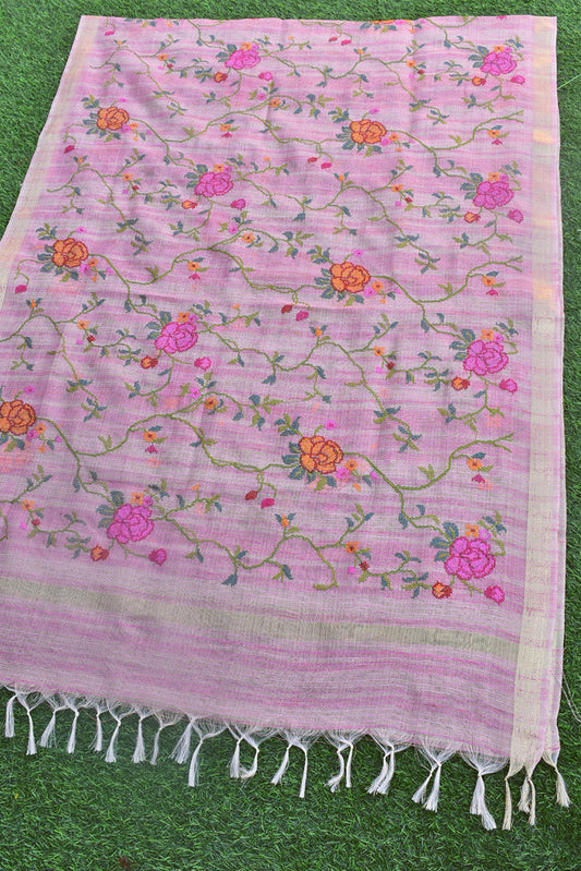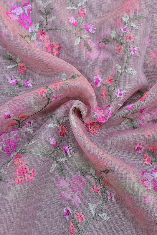 Elegant Kota Tissue dupatta with All over Cross Stitch Embroidery - pink
