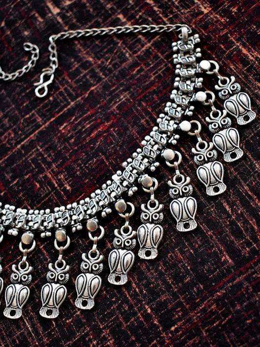 ULUKA- LAKSHMI'S VAHANA - Beautiful Antique finish German Silver choker