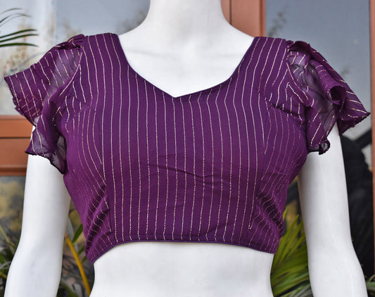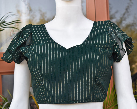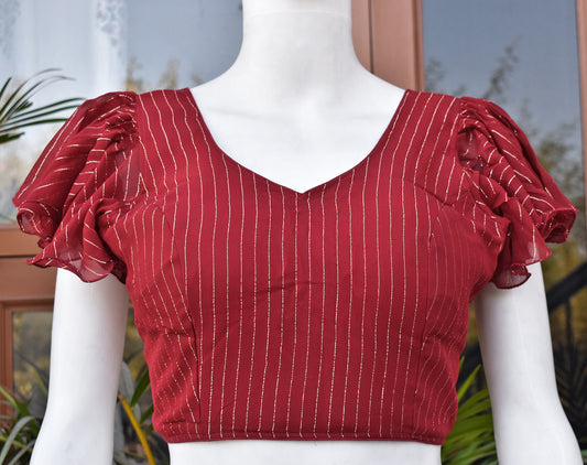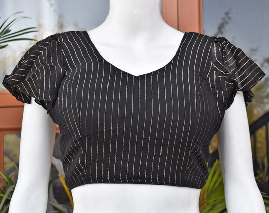Georgette Blouse fabric with gold lines with frill sleeves - 38 , 40 - Adjustable till size 42