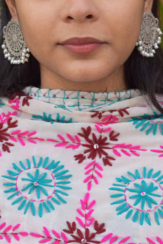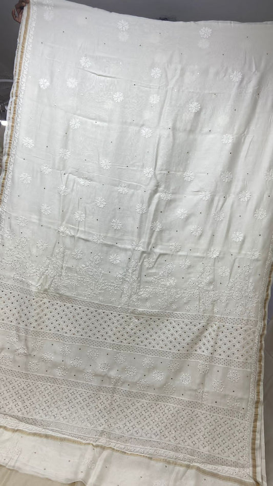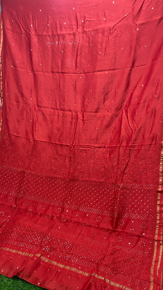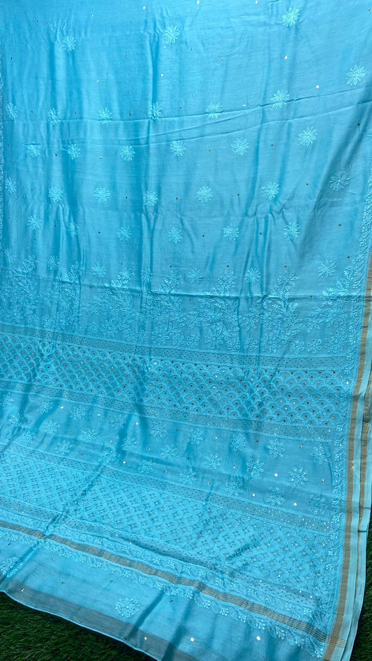 Beautiful Heavy Chanderi Saree with Hand Chikankari & Muqaish Work