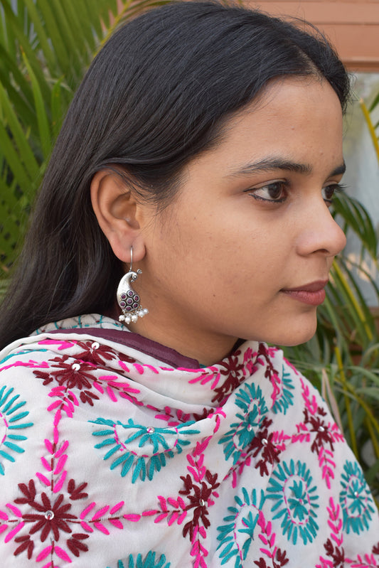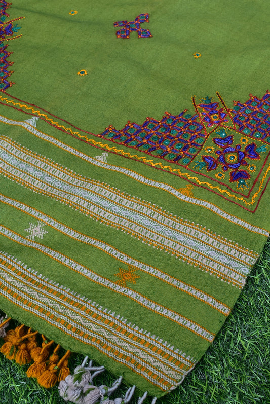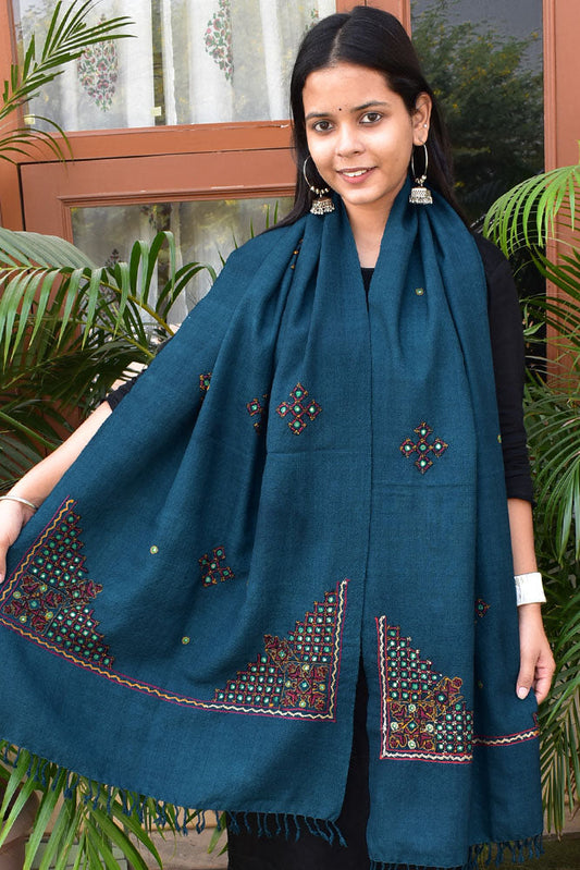 Handwoven Kutch Pure Merino Wool Stole with Mutva Hand Embroidery work