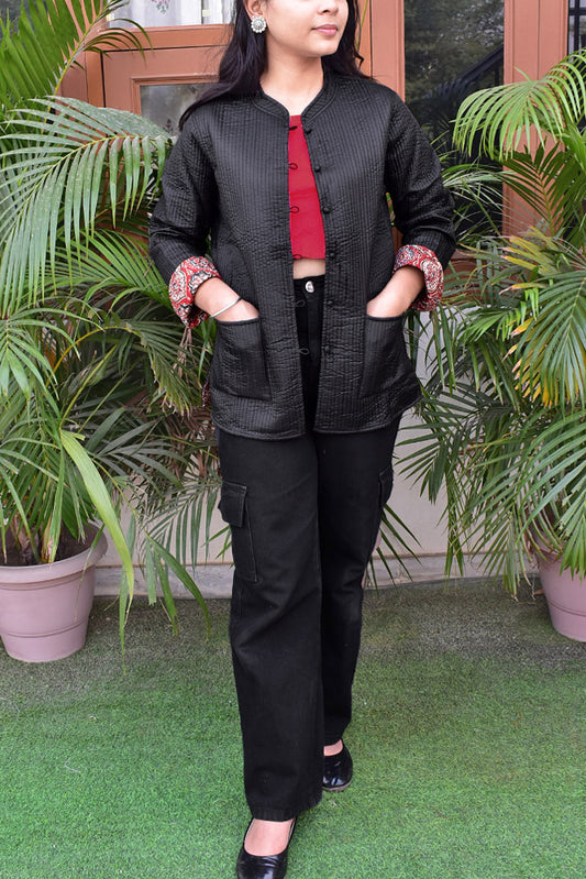 Block Print Quilted Reversible Silk & cotton jacket - Size 38, 40
