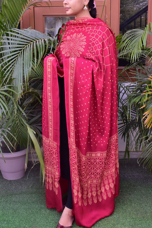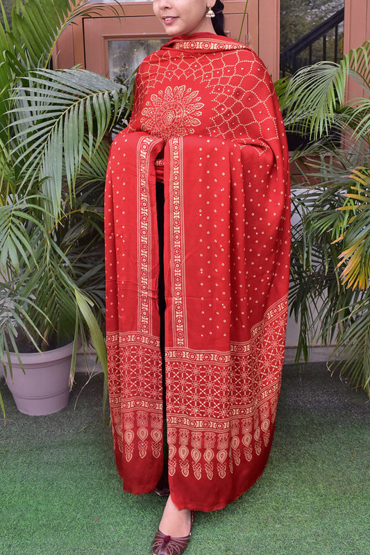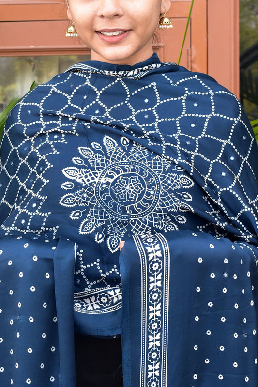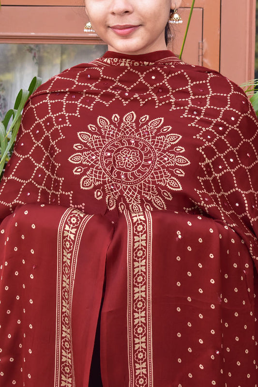 Elegant Modal Silk Dupatta with Bandhani Print & Foil Mirror Work