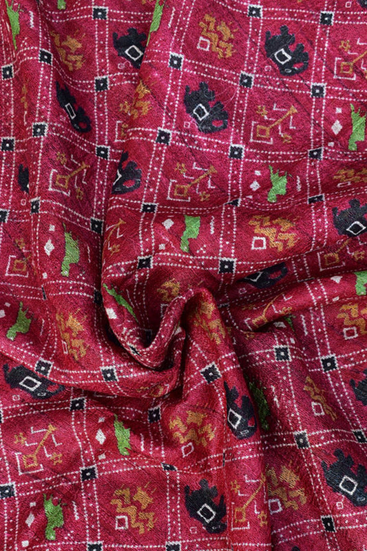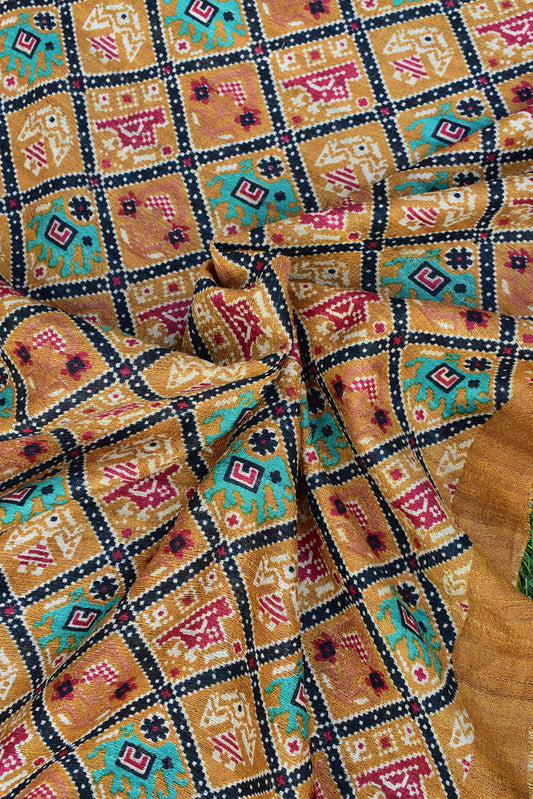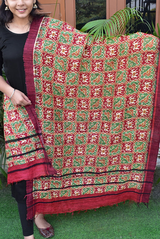 Geecha Silk Dupatta with Hand Block print with patola inspired print