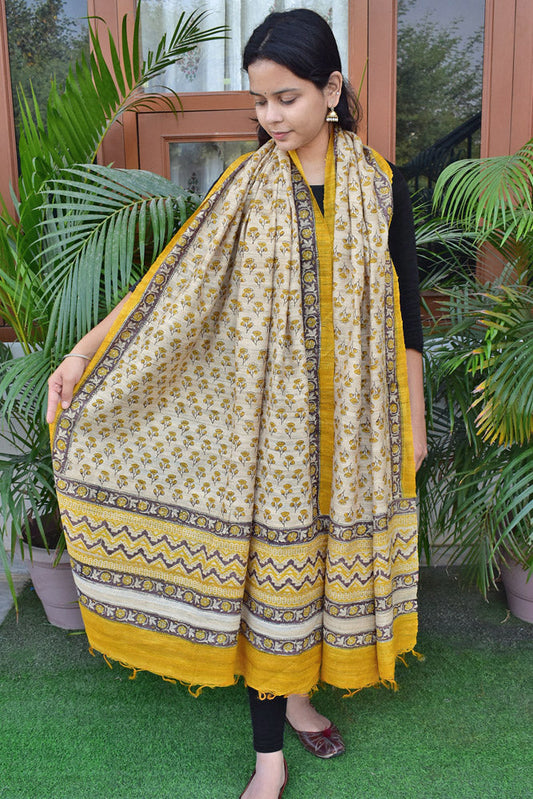 Geecha Silk Dupatta with Hand Block print