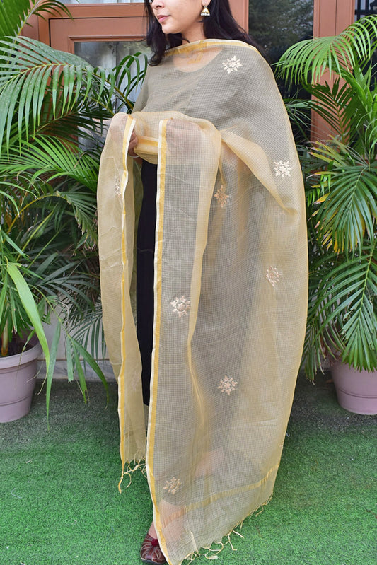 Kota silk dupatta with Pitta Embroidery work