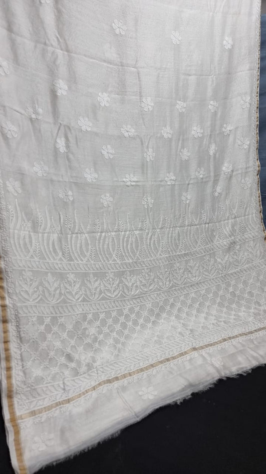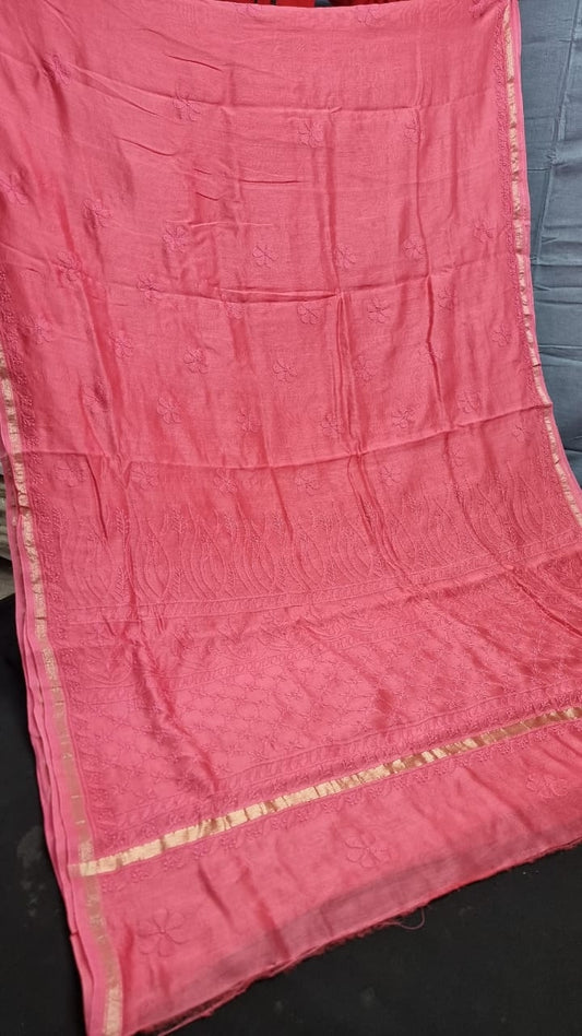 Elegant Chanderi Silk Cotton Saree with Intricate Lucknowi Chikankari work