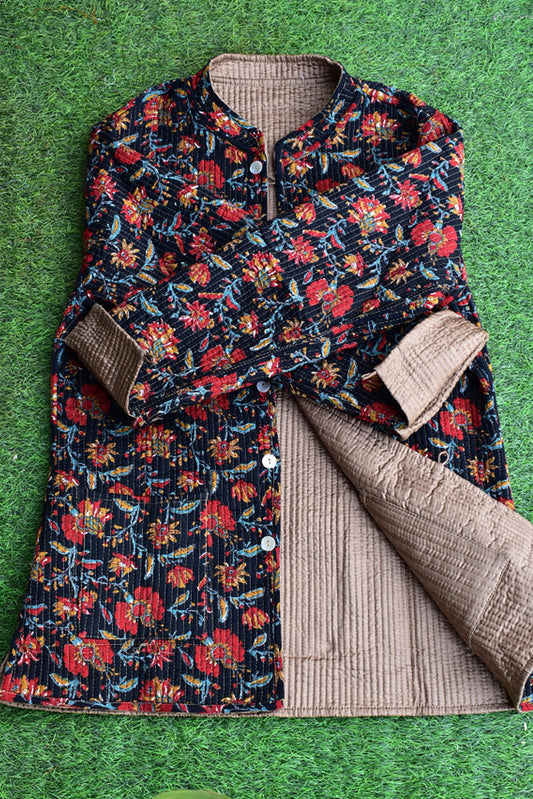 Block Print Quilted Reversible Silk & cotton jacket - Size 38, 42