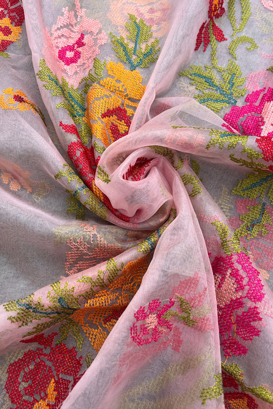 Elegant Pink Organza dupatta with All over Cross Stitch Embroidery