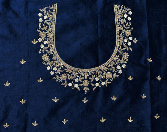 Hand Embroidered Zardozi, Dabka & Sequin work Blouse on Art Silk Fabric - Size 38, 40 , 42 ( has margins for Size Extension))