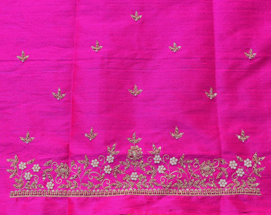 Intricate & Detailed Hand Zardozi, Dabka, Aari , Pearl & Sequin work Blouse Fabric on Pure Raw Silk Fabric