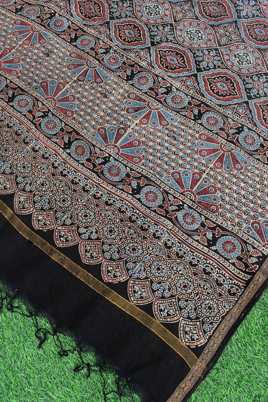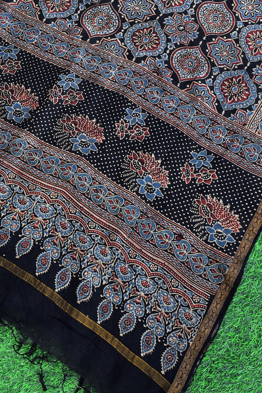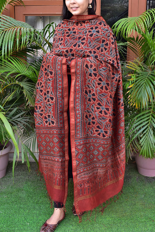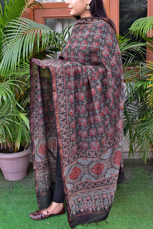 Elegant Ajrakh Hand Block Print Chanderi Dupatta