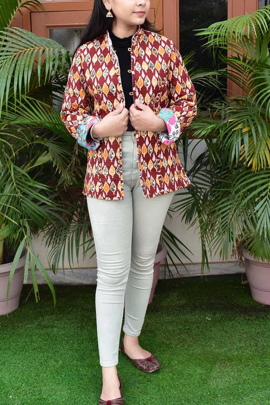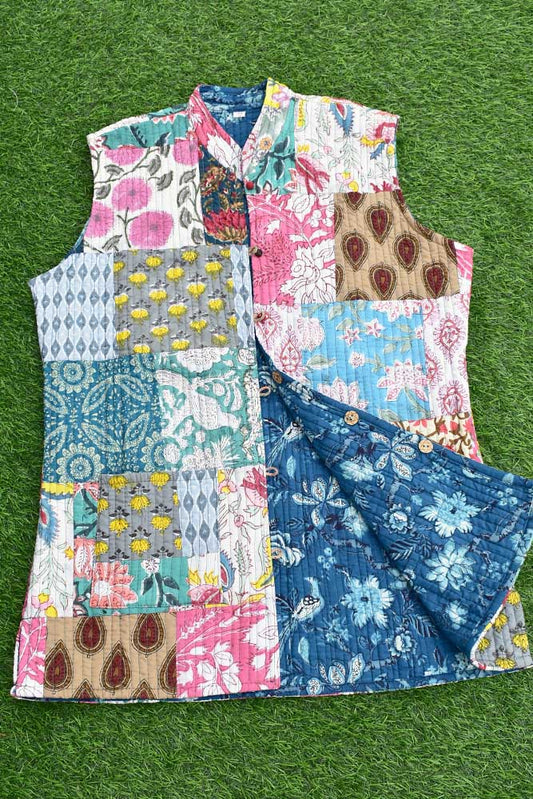 Patch Work Block Print Quilted Reversible cotton jacket - Sold