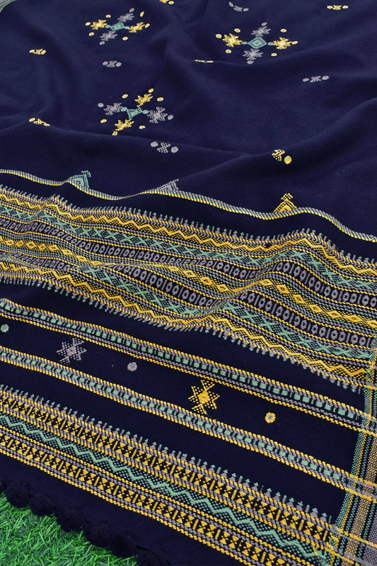 Handwoven Bhujodi Mirror Work Pure Wool Stole / Shawl
