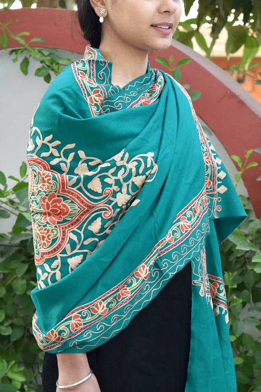 Beautiful woolen suit with Embroidery & Embroidered Woolen Stole