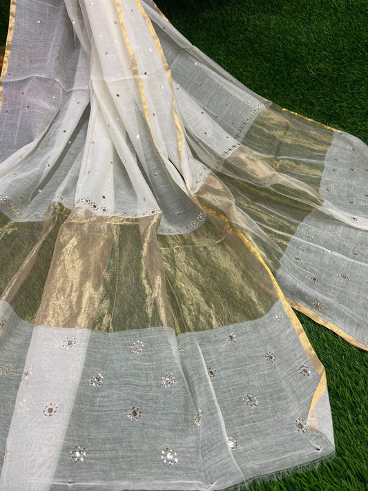 Beautiful Soft Chanderi Silk Dupatta with all over heavy Muqaish work - Dyeable