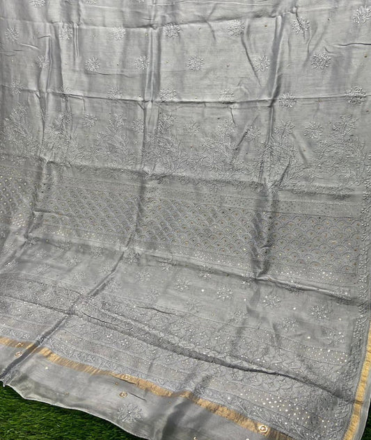 Beautiful Heavy Chanderi Saree with Hand Chikankari & Muqaish Work