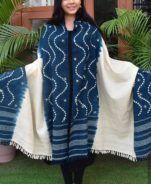 Kutch Handwoven Mirror Work Bandhani Pure Wool Shawl