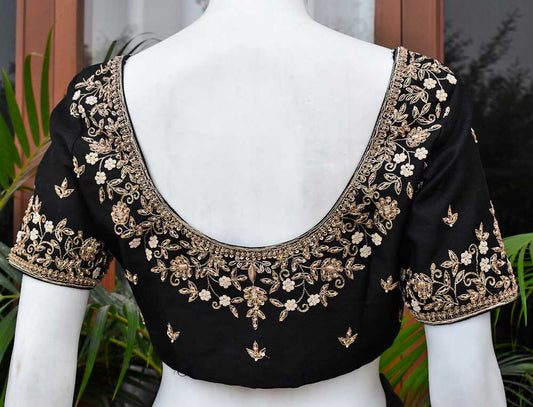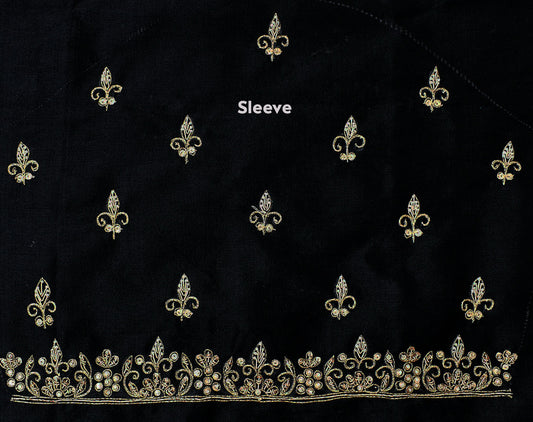 Black - Intricate & Detailed Hand Zardozi, Dabka, Aari , Pearl & Sequin work Blouse Fabric on Pure Raw Silk Fabric