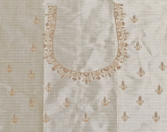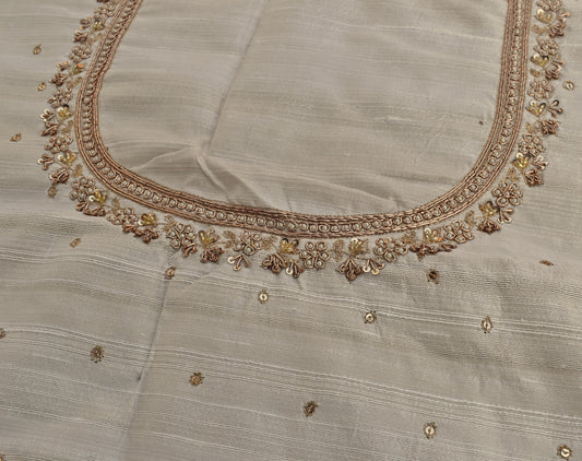 Intricate & Detailed Hand Zardozi, Dabka, Aari , Pearl & Sequin work Blouse Fabric on Pure Raw Silk Fabric