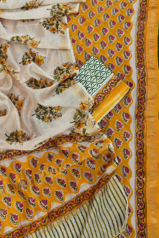 Elegant Sanganer Hand Block Printed Maheshwari Unstitched suit fabric