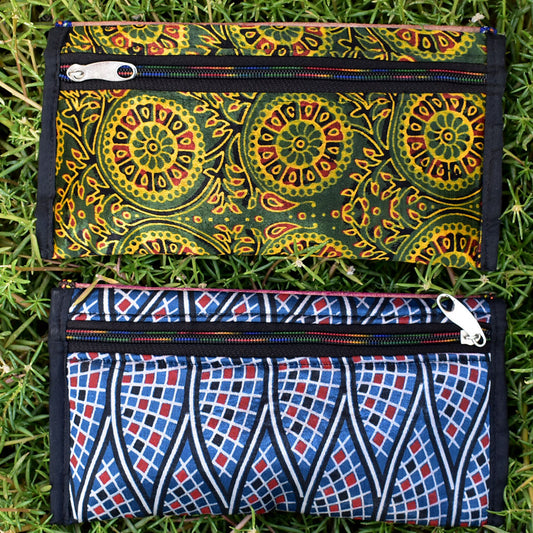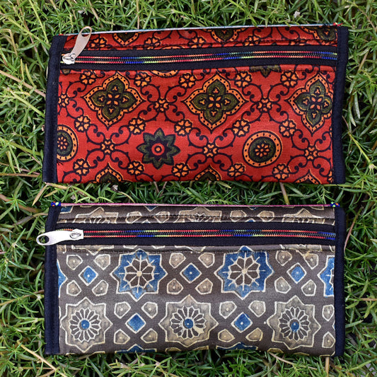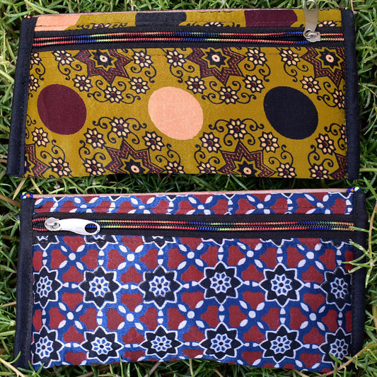Set of 2 - Handcrafted Kutch Leather Punch work &Ajrakh Mashroo wallet/purse