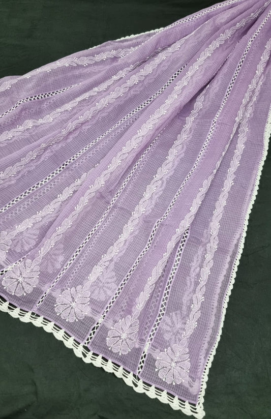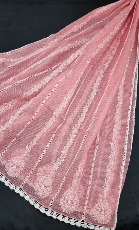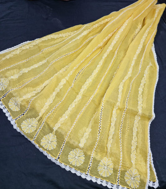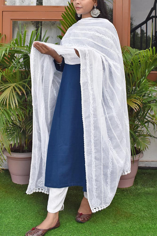 Handcrafted Kota Cotton Dupatta with heavy Chikankari embroidery & crochet borders